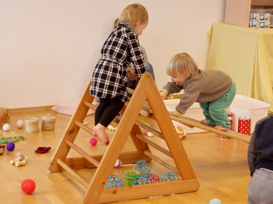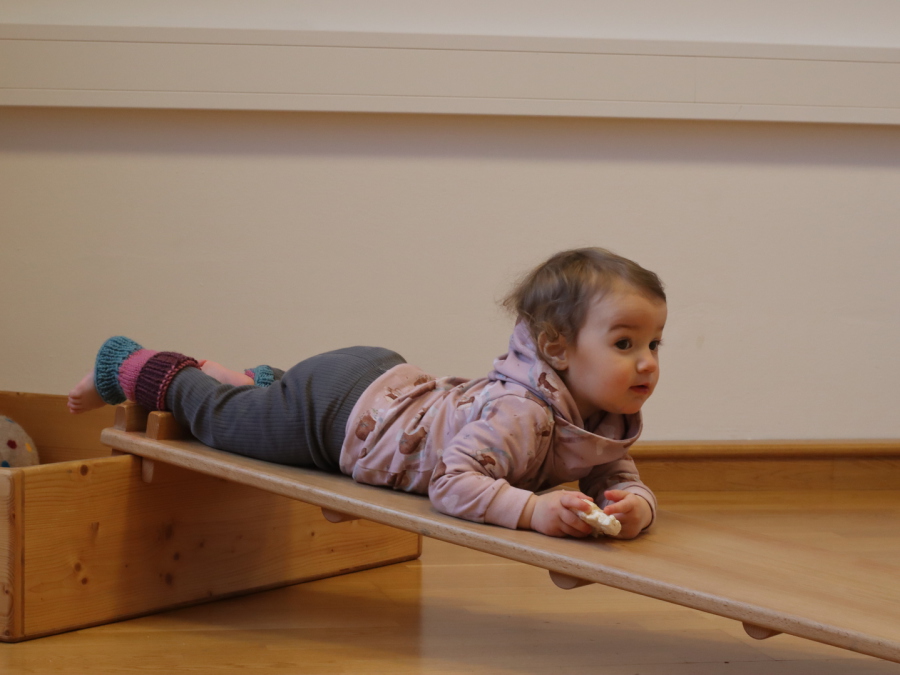 Im Mittelpunkt stehen das freie Spiel und die natürliche Bewegungsentwicklung. Eltern erleben, wie ihr Kind durch selbstbestimmte Aktivität, respektvolle Begleitung und eine vorbereitete Umgebung zu innerer Stärke und Selbstvertrauen findet.