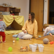 Tauche ein in die Welt des SpielRaums – hier findest du liebevolle Momentaufnahmen aus dem Alltag unserer Spielgruppe. Die Bilder zeigen, wie Kinder in einer sicheren und achtsamen Umgebung nach den Prinzipien von Emmi Pikler spielen, entdecken und wachsen. Lass dich inspirieren von der Ruhe, Konzentration und Freude, die in jeder Szene spürbar ist.